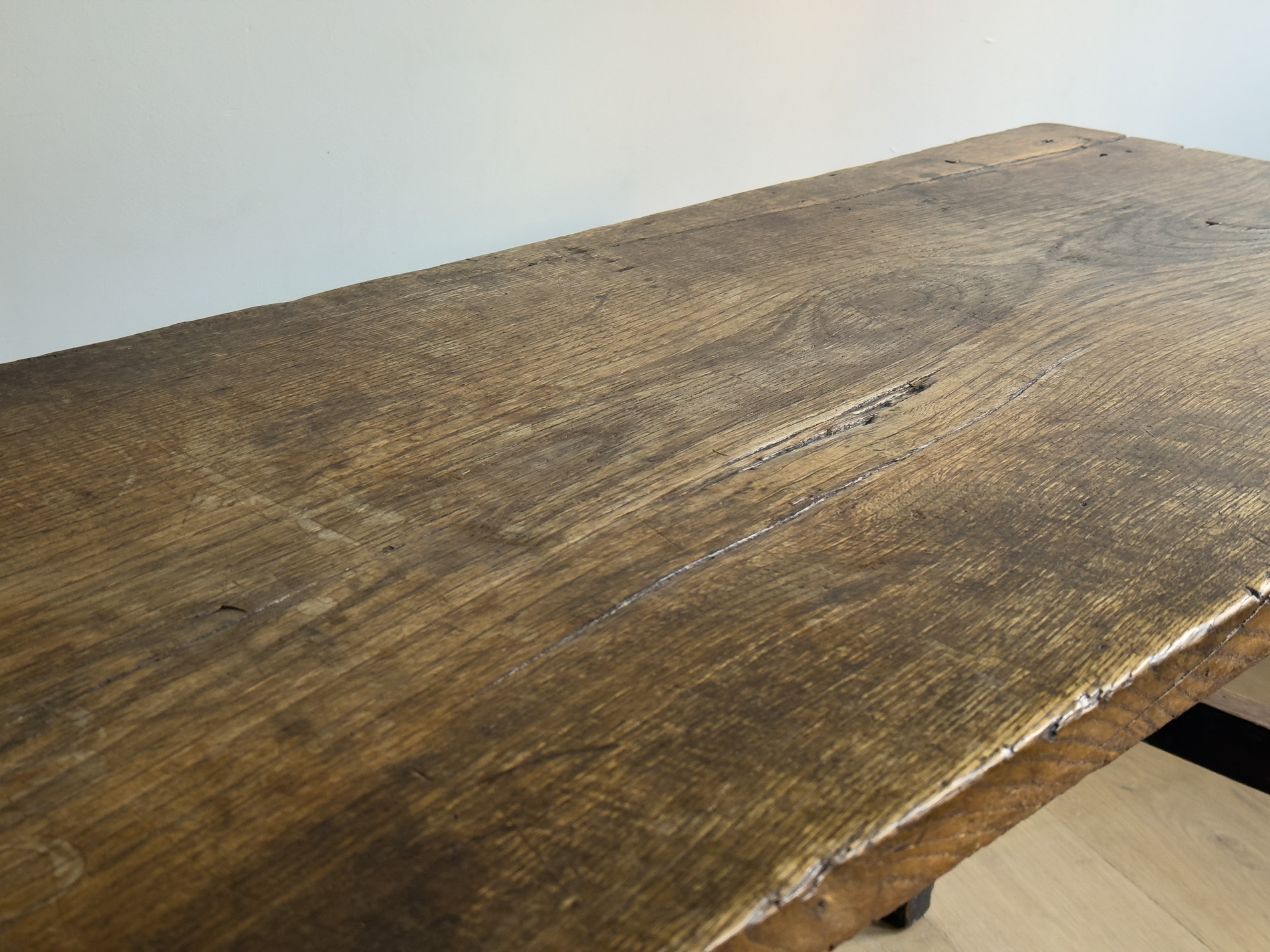 For stability, discreet modern corner supports have been added underneath the top. These are carefully concealed and do not affect the overall appearance, allowing the table to remain both functional and visually authentic.